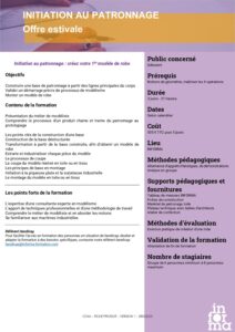 Initiation au patronnage_26 Date 12 décembre 2025 Comments 0 comment FORMATION INFORMA INITIATION PATRONNAGE POUR DEBUTANT Share: You may also like Fermeture pour les fêtes 23 décembre, 2025 Les inscriptions 2025-2026 sont ouvertes ! 28 août, 2025 Nouvelle offre de formation RSE : Informa vous accompagne vers une stratégie responsable 16 mai, 2025